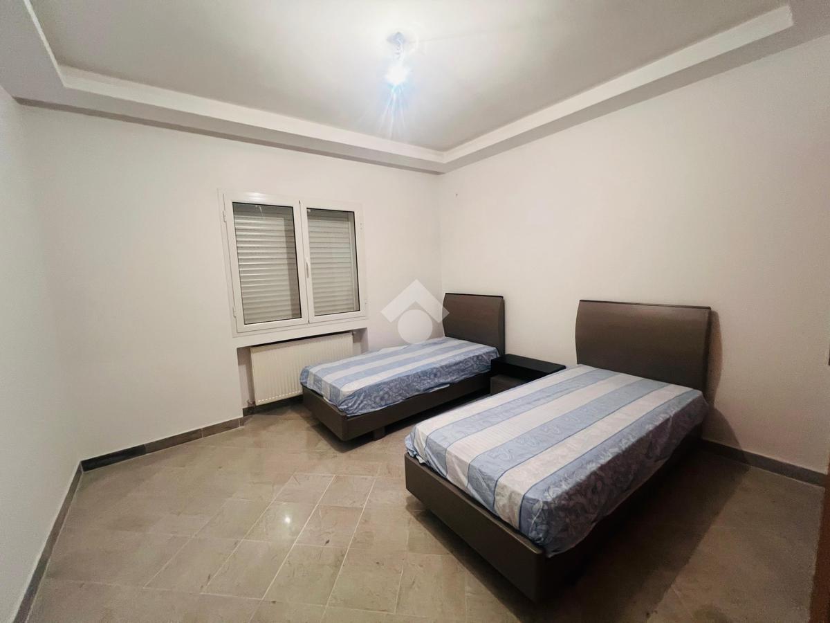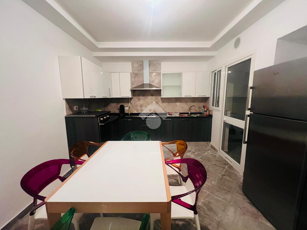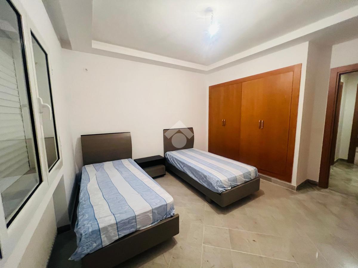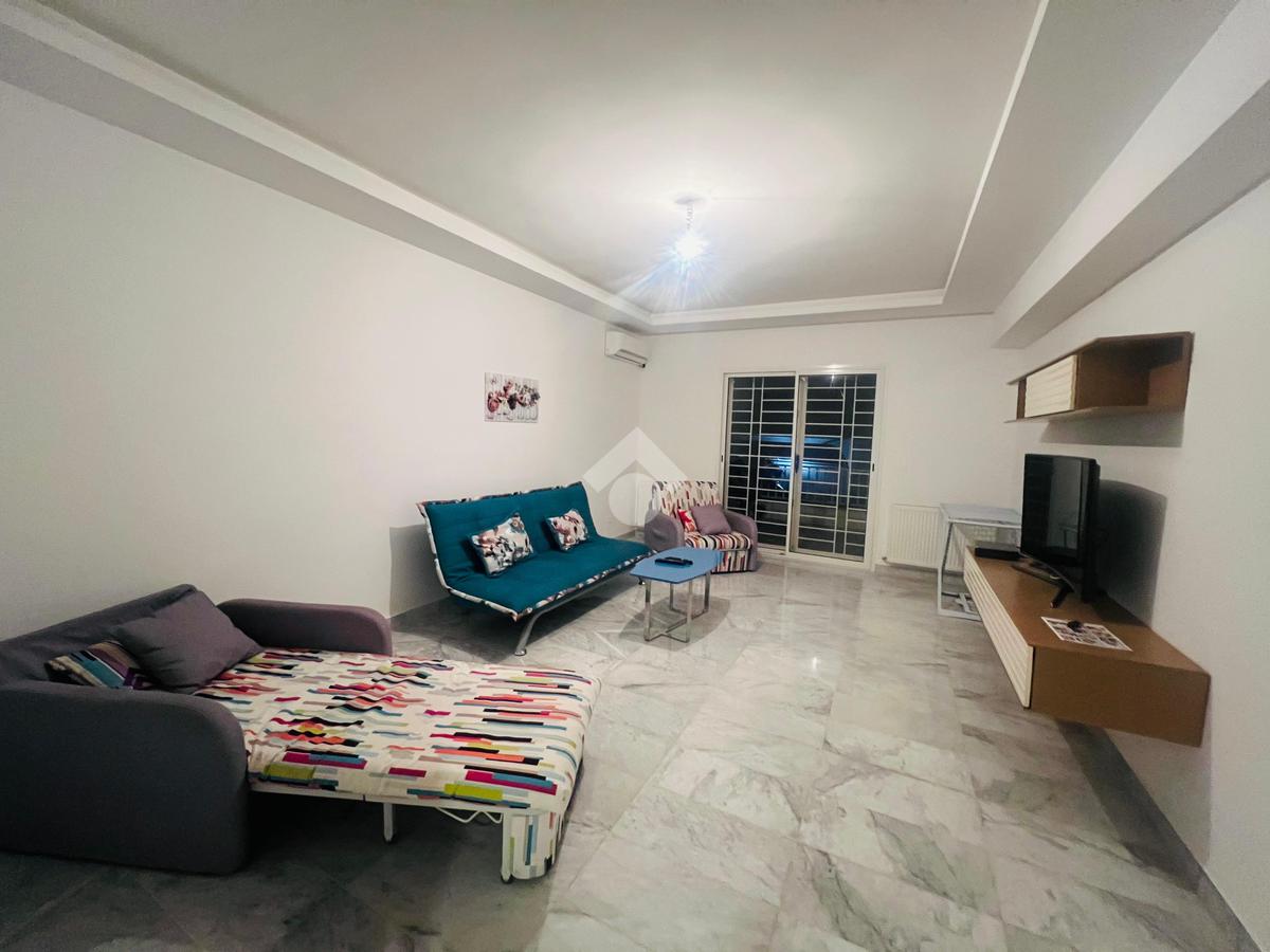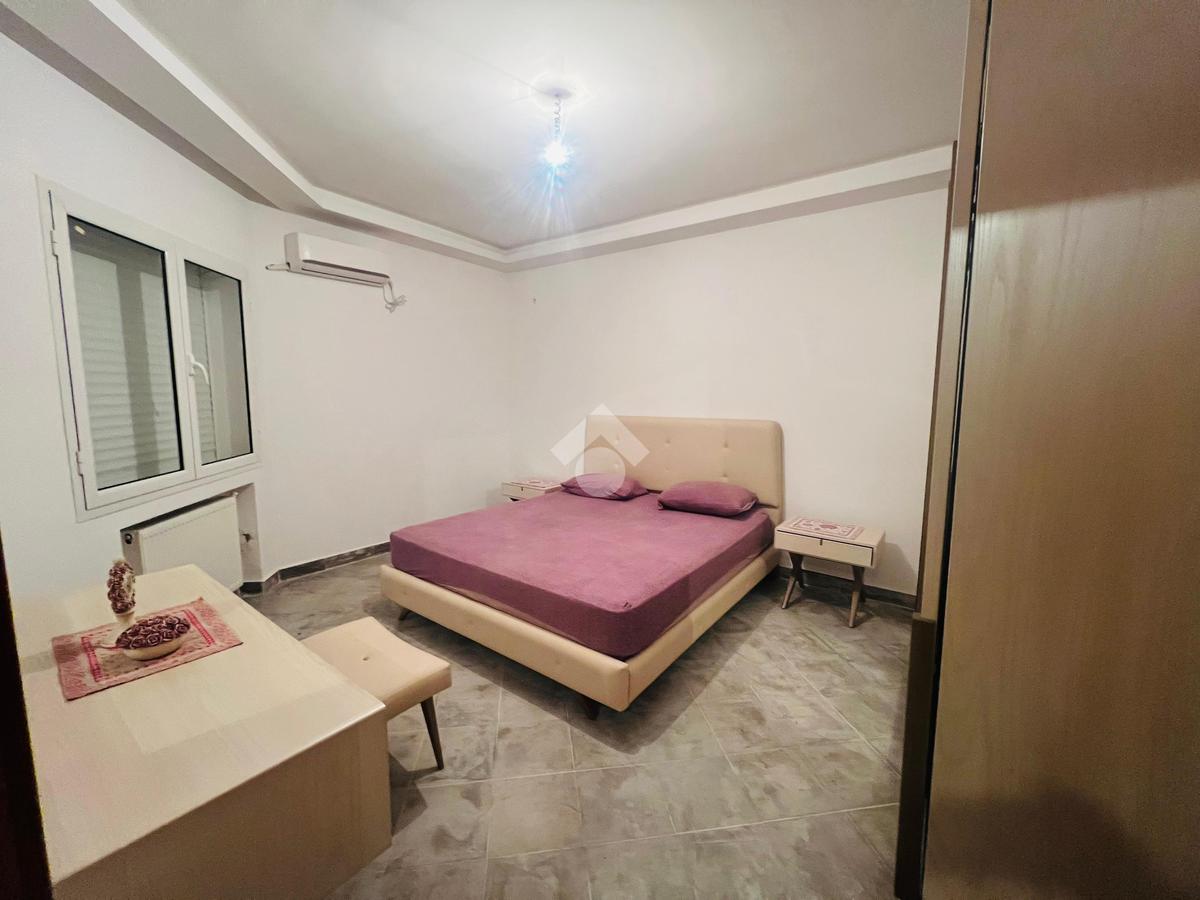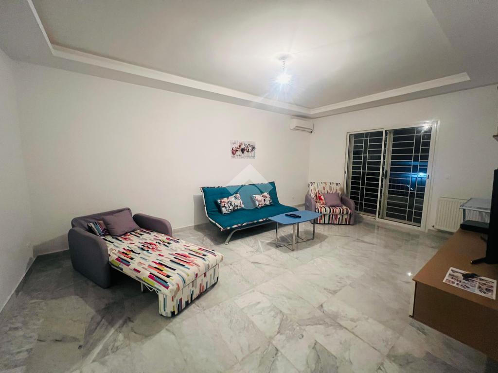 Cet appartement en S+2 richement meublé est situé à Ennasr 1, au rez-de-chaussée d’une résidence en R+4.
